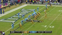 Baltimore Ravens quarterback Joe Flacco goes for a two-point conversion after the touchdown to tie it up.