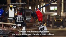 Dans des scènes évoquant les films d'action à gros budget, un géant robot américain a combattu un adversaire japonais, dans une bataille vue en ligne par des dizaines de milliers de personnes. Durée: 00:52