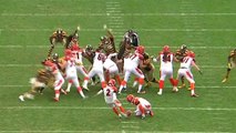 Carolina Panthers defensive tackle Kawann Short blocks Chicago Bears kicker Connor Barth's 52-yard field goal attempt.