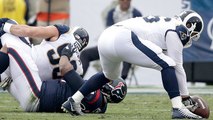 Los Angeles Chargers defensive end Chris McCain takes down Denver Broncos quarterback Trevor Siemian for a strip-sack.