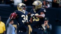 Trey Edmunds runs in the Saints' sixth rushing TD, a franchise record