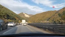 Kamyon devrildi, odunlar yola savruldu