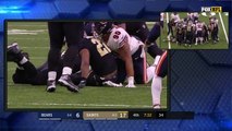 New Orleans Saints running back Mark Ingram fumbles for the second time and Chicago Bears safety Adrian Amos recovers it.