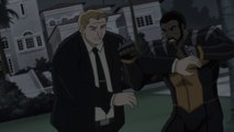 Suicide Squad movie scene - Deadshot shows his ability Suicide Squad is an American superhero movie directed and written by David Ayer, released in 2016. Centered on the team of super villains Suicide Squad, this is the third film in the DC film universe.