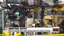 Korea's industrial output drops at fastest pace in 21 months in October