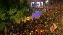 Les gens manifestent devant le bâtiment de la Generalitat de Barcelone alors qu'un juge espagnol a ordonné jeudi 2 novembre la mise en détention provisoire de huit membres du gouvernement catalan destitué en attendant l'avancée de l'enquête sur leur rôles dans la tumultueuse quête d'indépendance de la région. Durée: 01:20