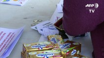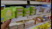 Des éleveurs laitiers mènent des actions dans certaines grandes surfaces pour dire que la pénurie de beurre n'existe pas, pointant la responsabilité des distributeurs qui ne le paient pas à son "juste prix" selon eux. Durée: 00:58