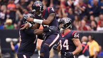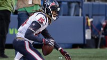 Houston Texans QB Deshaun Watson hits wide receiver Will Fuller who fights for a few yards.