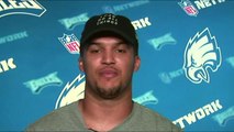 Philadelphia Eagles quarterback Carson Wentz lofts a perfect pass to tight end Trey Burton, who uses his thighs to help him bring in the 27-yard touchdown.