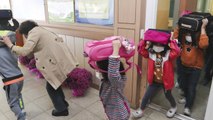 곧이어 경광봉을 흔드는 안전유도팀 안내에 따라 가방을 뒤집어쓰고 차례로 대피했습니다.