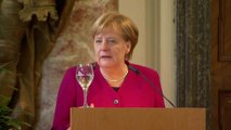 메르켈 총리는 트럼프 대통령을 향해 몸을 돌려 악수를 제안했지만