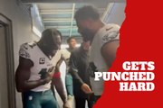 Eagles A.J. Brown gets punched hard by Philadelphia teammate Jordan Mailata
