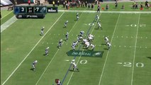 Philadelphia Eagles running back Kenjon Barner leaps into the air and is able to keep both feet in bounds along the sideline for a 22-yard grab.
