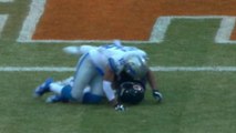 Baltimore Ravens cornerback Marlon Humphrey picks off Detroit Lions quarterback Matthew Stafford's pass.