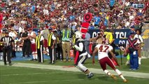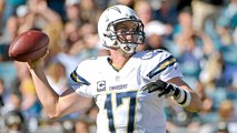 Los Angeles Chargers quarterback Philip Rivers dumps off a screen pass to his running back Austin Ekeler for 16 yards.