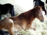 Les poneys du club couché