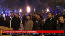 ARTVİN – Artvin'de Ülkü Ocakları üyeleri, ABD Başkanı Donald Trump'ın Kudüs'ü İsrail'in başkenti olarak tanıması kararını protesto etti.
