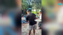 The video, shot in Manhattan, New York City, shows Jax hardly blowing on the candle to put it out.