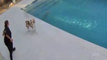 Wipeout! Dog takes fantastically clumsy dive off dock into pool