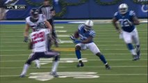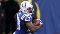 Indianapolis Colts running back Frank Gore jukes his way past Baltimore Ravens safety Eric Weddle for a 12-yard gain.