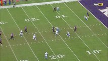 Baltimore Ravens quarterback Joe Flacco throws on the run to wide receiver Chris Moore for a 20-yard gain.