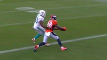 Denver Broncos quarterback Brock Osweiler and wide receiver Demaryius Thomas connect on a pinpoint pass for a 24-yard gain.
