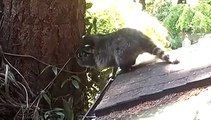 Rakun yavrusunu eğitiyor