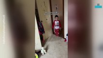 In the video, filmed on Christmas Eve in Henderson, near Las Vegas, adorable Mason tears off the wrapper of a box. He then opens it, to discover the banana.