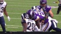 Minnesota Vikings running back Latavius Murray uses leverage to power through Bears defense for second touchdown of the game.