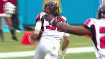Carolina Panthers quarterback Cam Newton throws the ball straight to Atlanta Falcons safety Ricardo Allen for the interception.