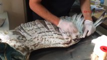 Burada yapılan muayenede kartalın hasta ve uçamadığını belirlendi.