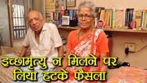 An elderly couple from Mumbai’s Charni Road, 88-year-old Narayan Lavate and his wife 78-year-old Iravati Lavate, has written to President demanding ‘Active Euthanasia’. The couple with no children and siblings feels that it’s unfair keeping them alive against their wishes. They added it is a “waste of the country's scarce resources as well as theirs.” Narayan Lavate retired from Maharashtra State Road Transport Corporation (MSRCT) in 1989. The couple planned to go to Switzerland where ‘Active Euthanasia’ is allowed, but he cannot go there because he does not have a passport. He is waiting for the response from the President, if he does not get response he will advertise in the newspapers and offer Rs 5 Lakh to underworld don to take their lives. Watch this video for more details.