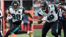 Jacksonville Jaguars quarterback Blake Bortles connects with wide receiver Allen Hurns on the run for a 15-yard gain.