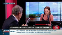 Amazon a vu son chiffre d'affaires dans l'alimentaire augmenter de 59% aux Etats-Unis et de plus de 50% en Europe sur un an. La part de marché en ligne d'Amazon est de 18% sur ce secteur, soit deux fois plus que son principal concurrent Walmart. Une hausse de chiffre d'affaires liée au rachat de Whole Foods, leader des supermarchés bio, en juin dernier. Le succès vis-à-vis des consommateurs a été inattendu pour Amazon. La société se hisse au 6e rang des groupes de distribution et devrait figurer dans le Top 3 au cours de l'année. - Tous les jours à 7h20, on parle éco et conso avec Marie Dupin, dans Bourdin Direct, sur RMC.