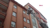 İtfaiye ekiplerinin buzları kırmasından görüntü Kayseri'de kar yağışının ardından soğuk hava nedeniyle çatılarda oluşan buz sarkıtları, itfaiye ekiplerince temizlendi.