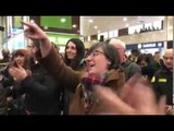 Els concentrats a l'estació de Sants canten 'Els Segadors'