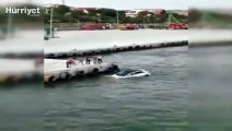 Denize düşen kamyonun çıkartılmasından görüntüler.