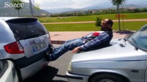 TEHLİKELİ YOLCULUĞA "MAŞALLAH"Ön kaputun üzerinde oturan adamın önde giden diğer otomobile yaklaştıkları zaman dokunarak da ittiği dikkat çekti. Haber