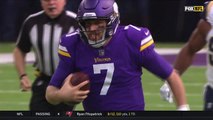 Los Angeles Rams quarterback Case Keenum fakes a hand-off to running back Todd Gurley then scrambles for a 1-yard touchdown.