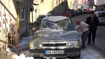 Gören gözlerine inanamadı... Kar kütlesi otomobili kağıt gibi ezdi!