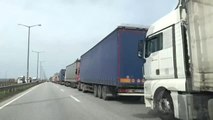 - Tır kuyruğundan detaylar - Tır şoförlerinin açıklamaları - Kapıkule Sınır Kapısı'ndan detaylarAvrupa'ya açılan sınır kapılarında tır kuyruğu - Yurt dışına çıkmak için bekleyen tırlar, Kapıkule Sınır Kapısı'nda 16, Hamzabeyli Sınır Kapısı'nda ise 8 kilometre kuyruk oluşturduEDİRNE (AA) - Avrupa'ya çıkmak isteyen tırlar, Edirne 'deki sınır kapılarında yoğunluğa neden oldu.İhracat yüklerini teslim edecekleri ülkelere yetiştirmek için yola çıkan tır sürücüleri, Bulgaristan'ın yoğunluğa cevap verememesi üzerine sınır kapılarında kuyruk oluşturdu.Tır kuyruğu Kapıkule Sınır Kapısı'nda 16, Hamzabeyli Sınır Kapısı'nda ise 8 kilometreyi buldu.Kapıkule Sınır Kapısı önünde yaklaşık 640, Hamzabeyli Sınır Kapısı önünden ise yaklaşık 320 tır yurt dışına çıkmak için işlemlerinin tamamlanmasını bekliyor.Sürücü Ali Güleç, AA muhabirine yaptığı açıklamada, dün saat 15.00'ten bu yana beklediğini, bu nedenle sıkıntılar yaşadıklarını anlattı.Tır şoförü Altan Yılman da dün saat 16:00'dan beri kuyrukta beklediğini belirterek, "Kuyruğun nedenini tam olarak bilmiyoruz. Birileri sistemden olduğunu söylüyor. Olan yine tır şoförüne oluyor." dedi.