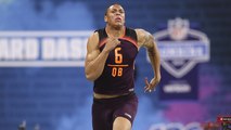 Louisville quarterback Lamar Jackson announces to the media that he will not be running the 40-yard dash at the 2018 NFL Combine