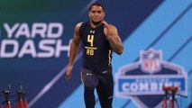 Former OSU wide receiver James Washington participates in the 40-yard dash at the 2018 NFL Scouting Combine.