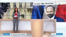 A l'occasion de la 41e journée internationale des droits des femmes, Édouard Philippe a appelé jeudi l'ensemble de la société à s'impliquer dans la promotion de l'égalité femmes-hommes, à l'issue d'un comité interministériel qui a adopté plusieurs dizaines de mesures. Durée: 01:00