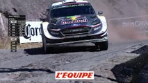 VIDEO WRC - Le grand perdant du jour est Kris Meeke (Citroën), deuxième du classement général. Le pilote britannique a fait une sortie de route, sa voiture versant dans un virage, et n'a réussi que le 11e chrono.