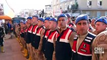 - Şırnak 'tan Afrin'e dualarla uğurlandılar - Törende selamlaması - Vali Mehmet Aktaş'ın konuşması - Komando andı - Kurban kesilmesi - Daunın yapılması - GKKB Mehmet Güngör'ün konuşması - Asker ailesi Abdullah Polat'ın konuşması - İsmail Polat'ın konuşması - Askerlerin uğurlanması - Çakırsöğüt Jandarma Tugay Komutanlığında görevli 600 asker ile 60 güvenlik korucusu, Afrin bölgesinde yürütülen Zeytin Dalı Harekatı'na katılmak üzere bölgeye gönderildi - Vali Aktaş: - " Şırnak 'ta, Gabar'da, Cudi'de, Kato'da, Bestler - Dereler'de nasıl ki bu hainleri inlerine gömdünüz nasıl ki şehir operasyonlarında onları o açtıkları çukura gömdünüz Allah'ın izniyle Afrin'de de bu hainlere ve onların tasmasını elinde tutan küresel ağababalarına da yine aynı dersi vereceksiniz"ŞIRNAK (AA) - Çakırsöğüt Jandarma Tugay Komutanlığında görevli 600 asker ile 60 güvenlik korucusu, Türk Silahlı Kuvvetlerince (TSK) Suriye'nin Afrin bölgesinde terör örgütleri YPG/PKK - DEAŞ'a yönelik yürütülen Zeytin Dalı Harekatı'na katılmak üzere dualarla bölgeye uğurlandı.Tugay komutanlığında düzenlenen törene, Vali Mehmet Aktaş, Van Asayiş Kolordu Komutanı Korgeneral Salih Karataş, 23. Jandarma Sınır Tümen Komutanı Tümgeneral Veli Tarakcı, Çakırsöğüt Jandarma Komando Tugay Komutanı Tuğgeneral Ercan Yaşin, Belediye Başkan Vekili Turan Bedirhanoğlu, Şırnak Üniversitesi Rektörü Prof. Dr. Emin Erkan, askerler ile asker ve güvenlik korucularının aileleri katıldı.