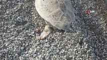 Ahmet Aşkın isimli başka bir vatandaş ise, Kaplumbağa balıkçılar tarafından atılan ağlara takıldığını belirterek, "Her tarafa rastgele ağ atılıyor. Hayvan kurtulamadı, çatladı. En sonunda karaya vurdu. Biz arada sırada ölmüş kaplumbağaları görüyoruz. Bence hayvan acıktı, ağdaki balıklara saldırınca ağlardan kurtulamadı" şeklinde konuştu.