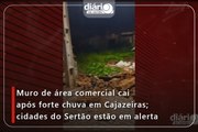 Muro de área comercial cai após forte chuva em Cajazeiras; cidades do Sertão estão em alerta