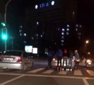Otomobil arkasında patenle yolculuk yapan gençler