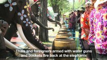 Elephants shower Thais with water in a street fight celebrating the kingdom's traditional new year, a raucous festival known as Songkran that will see revellers join a nationwide water battle later this week.
